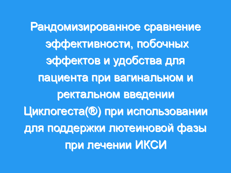 Это исследование демонстрирует, что эффективность Циклогеста одинакова при введении как вагинальным, так и ректальным путями. Хотя их побочные эффекты различаются, простота введения для пациентов и их предпочтения схожи.