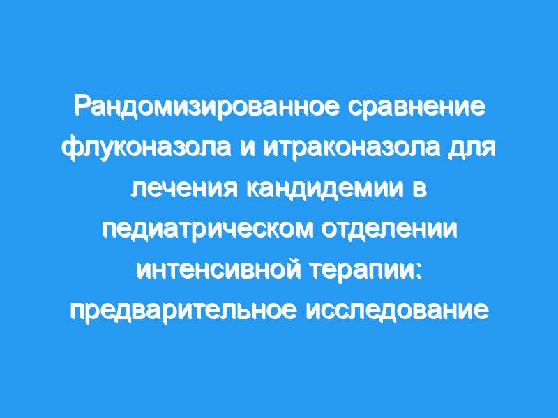 Педиатрическое отделение интенсивной терапии лечебно-профилактического учреждения. Субъекты: Сорок три педиатрических пациента с кандидемией, Вмешательство: Пациенты получали либо флуконазол (n = 22), либо итраконазол (n = 21), около 10 мг/кг перорально или через желудочный зонд, и находились под наблюдением для клинического и микологического лечения (стерильный грибковый посев крови), анализы крови и функции печени и почек. Измерения и основные результаты: Клинические характеристики двух групп были сопоставимы. Частота излечения была одинаковой в обеих группах: итраконазол 17 из 21 (81%) и флуконазол 18 из 22 (82%). Общий уровень смертности (итраконазол 9,5% и флуконазол 13,6%) также был сопоставим в двух группах пациентов. Частота электролитных нарушений была очень низкой и одинаковой в обеих группах. Мочевина крови, креатинин, печеночные ферменты и сывороточный билирубин не подвергались отрицательному воздействию.