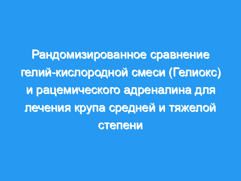 Сравнить аддитивный эффект гелий-кислородной смеси (Heliox) или рацемического адреналина (RE) на показатели крупа (CSs) у детей с крупом средней и тяжелой степени, получавших увлажненный кислород и стероиды. Дизайн. Проспективное рандомизированное двойное слепое исследование.