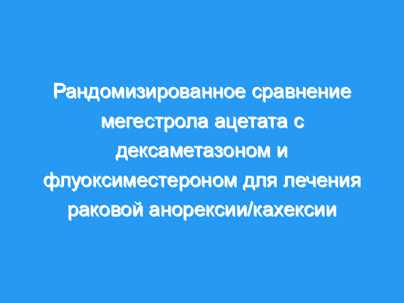 Предыдущие двойные слепые плацебо-контролируемые рандомизированные клинические испытания показали, что как кортикостероиды, так и прогестагенные препараты частично облегчают анорексию/кахексию при раке. Экспериментальная информация показала, что анаболические кортикостероиды могут также улучшать аппетит у пациентов с анорексией/кахексией при раке. Текущее исследование было разработано для сравнения и противопоставления прогестагенного средства, кортикостероида и анаболического кортикостероида для лечения раковой анорексии/кахексии. Пациенты и методы: Пациенты, страдающие анорексией/кахексией при раке, были рандомизированы для получения дексаметазона в дозе 0,75 мг в сутки, мегестрола ацетата в дозе 800 мг перорально каждый день или флуоксиместерона в дозе 10 мг перорально в день. Пациенты наблюдались с ежемесячными интервалами для оценки изменений веса и токсичности препарата. Пациенты также заполняли анкеты на начальном этапе и с ежемесячными интервалами для оценки аппетита и токсичности лекарств.