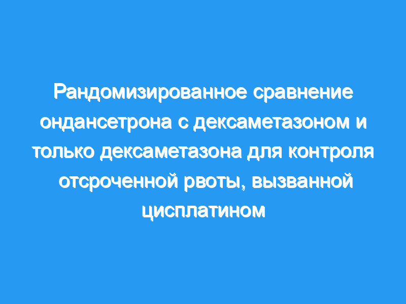 Чтобы оценить, могут ли антагонисты 5-НТ(3) повысить эффективность кортикостероидов в борьбе с отсроченной рвотой, мы провели рандомизированное, проспективное, открытое исследование, сравнивающее ондансетрон плюс дексаметазон с дексаметазоном отдельно у пациентов, получавших цисплатин.