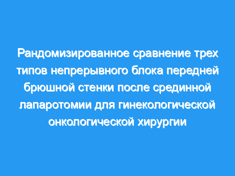 Мы сравнили три типа непрерывной блокады брюшной стенки для обезболивания после срединной лапаротомии у гинекологического онкологического хирурга.