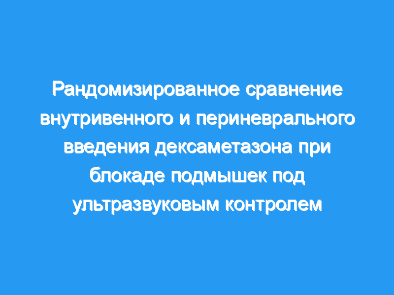 В этом рандомизированном двойном слепом исследовании сравнивалось влияние внутривенного и периневрального введения дексаметазона (8 мг) на продолжительность двигательной блокады при блокаде подмышечно-плечевого сплетения под контролем ультразвука (УЗИ).