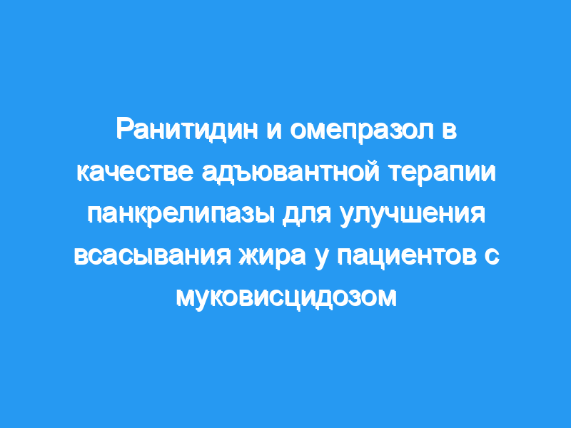 Было проведено двойное слепое плацебо-контролируемое перекрестное исследование с участием 12 детей и 10 взрослых с недостаточным КФ поджелудочной железы. Все испытуемые получали терапию панкрелипазой (панкреаза MT10 и MT16, Ortho-McNeil, Springhouse, Пенсильвания, США) и для исследования также получали либо плацебо, либо ранитидин (Zantac, Glaxo-Wellcome, Research Triangle Park, Северная Каролина, США) в дозе 5 мг/кг или 10 мг/кг ежедневно.. Взрослые пациенты также получали терапию омепразолом (Prilosec, AstraZeneca/Merck, Wilmington, DE, U.S.A.) в дозе 20 мг в день в качестве адъювантной терапии панкреатических ферментов. В Клиническом исследовательском центре были проведены последовательные 3-дневные исследования жирового баланса. Данные были проанализированы с использованием индивидуальных парных t-тестов, которые сравнивали каждое лечение с плацебо, и двух повторных измерений, общих тестов линейной модели F.