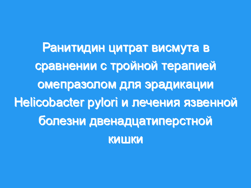 Сравнить эффективность и безопасность тройной терапии омепразолом плюс амоксициллин и кларитромицин по сравнению с ранитидином цитратом висмута плюс амоксициллин и кларитромицин при лечении язв двенадцатиперстной кишки, ассоциированных с Helicobacter pylori.
