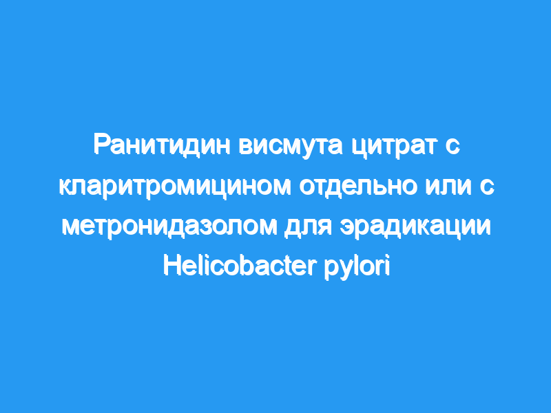 Как тройная терапия цитратом ранитидина висмута (RBC) плюс два антибиотика в течение 7 дней, так и двойная терапия RBC кларитромицином в течение 14 дней были тщательно изучены, оба режима эффективно уничтожают Helicobacter pylori. Однако в немногих исследованиях оценивалась эффективность двойной терапии, проводимой в течение 7 дней.