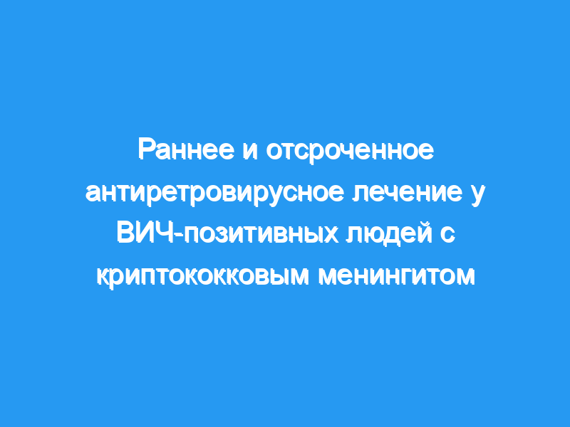остоверности доказательств до низкой или очень низкой достоверности. Выводы авторов: Результаты этого обзора актуальны для ВИЧ-инфицированных взрослых с криптококковым менингитом в странах с низким и средним уровнем дохода. Эти данные свидетельствуют о более высоком риске смертности среди людей, которые начинают АРТ в течение четырех недель после постановки диагноза криптококкового менингита. Однако неясно, связан ли этот более высокий риск смертности с криптококковым менингитом-IRIS.