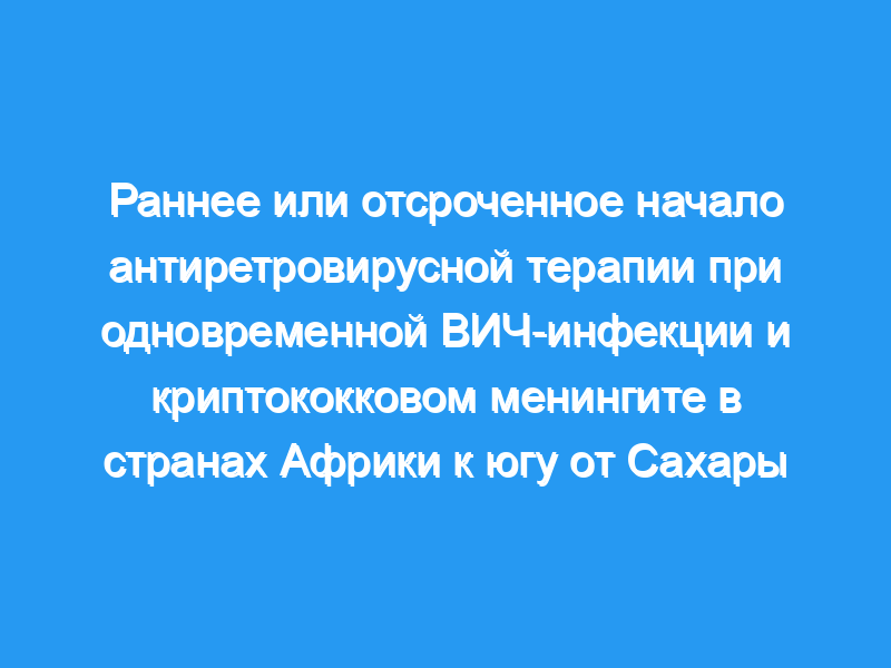 ВЫВОДЫ. В условиях ограниченных ресурсов, где лечение КМ может быть неоптимальным, по сравнению с задержкой в 10 недель после постановки диагноза КМ, раннее начало АРТ приводит к увеличению смертности.