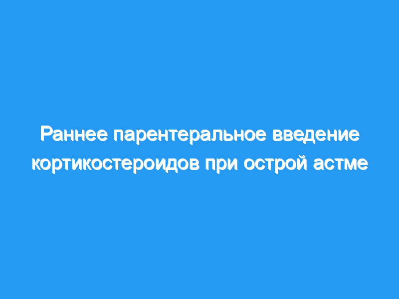 Для проверки гипотезы о том, что раннее парентеральное введение кортикостероидов может быть связано с быстрым улучшением обструкции воздушного потока у взрослых пациентов с астмой, было проведено рандомизированное двойное слепое плацебо-контролируемое исследование.