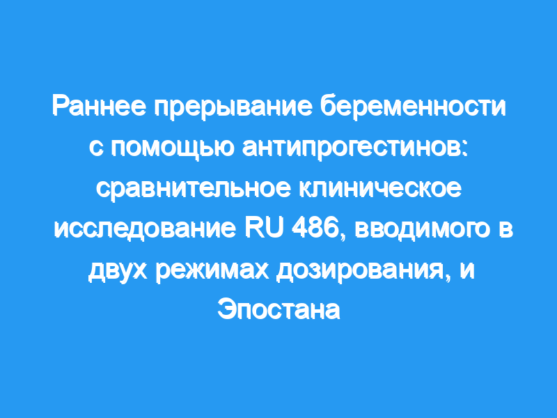 Мифепристон (RU 486, Roussel Uclaf, Роменвиль, Франция), агент, блокирующий рецепторы прогестерона (P), и Эпостан (WIN 32 729, Sterling-Winthrop, Гилфорд, Великобритания), ингибитор синтеза P, сравнивали по их способности прерывать беременность на ранних сроках у человека.