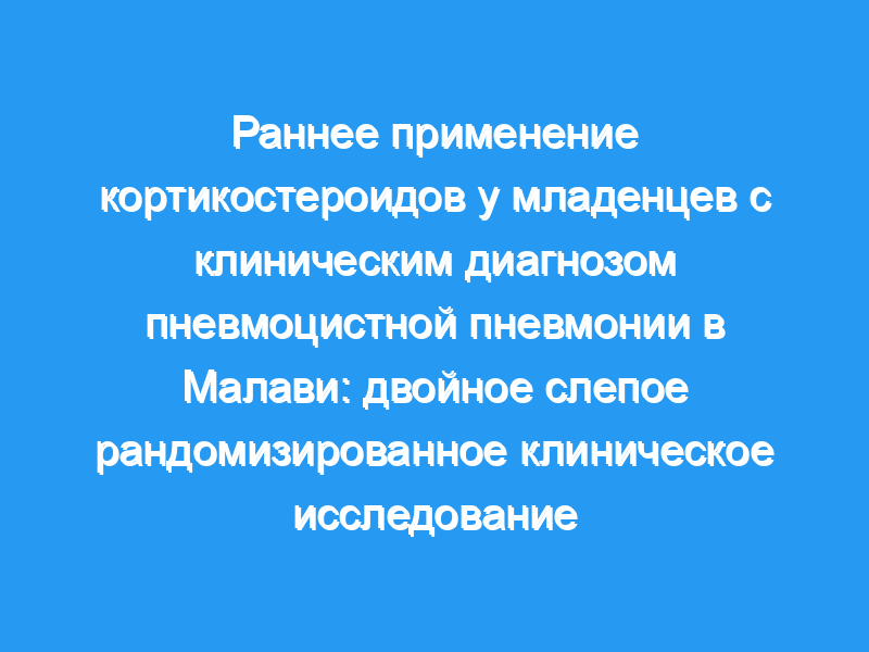 Было проведено двойное слепое плацебо-контролируемое исследование адъювантного лечения преднизолоном у ВИЧ-инфицированных младенцев в возрасте 2-6 месяцев, поступивших в Центральную больницу Королевы Елизаветы, Блантайр, у которых был клинически диагностирован PJP. Все завербованные младенцы были инфицированы ВИЧ, и ВИЧ-статус младенца был подтвержден с помощью ДНК-ПЦР. В исследование были включены ВИЧ-инфицированные и инфицированные младенцы, а также ВИЧ-инфицированные, но неинфицированные младенцы. Протокол предусматривал добавление преднизолона к лечению через 48 ч, если наблюдалось клиническое ухудшение или независимое показание к кортикостероидной терапии у любого пациента, не получающего ее. Пероральная терапия триметоприм-сульфаметоксазолом (TMP/SMX) и полное поддерживающее лечение проводились в соответствии с установленными рекомендациями. Первичные исходы для всех пациентов включали выживаемость до выписки из больницы и 6-месячную выживаемость после выписки.
