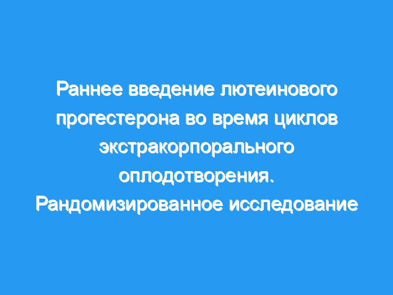 Эффекты добавок прогестерона (Р) ранней лютеиновой фазы были изучены у женщин с уровнем эндогенного Р в сыворотке крови менее или равным 12 нг/мЛ до переноса эмбриона.