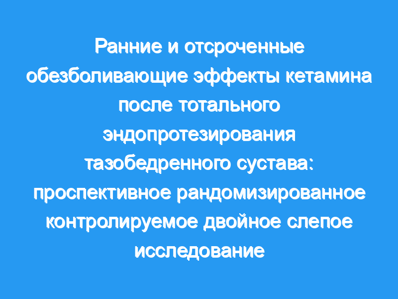 Было показано, что кетамин оказывает морфиносберегающее действие вскоре после операции. Тем не менее, остается неясным, сохраняется ли этот эффект после комбинирования с нестероидными противовоспалительными препаратами и ацетаминофеном, и может ли кетамин уменьшить хроническую боль после неонкологической операции. Таким образом, мы разработали исследование для оценки влияния кетамина на острую и хроническую послеоперационную боль в сочетании с мультимодальной анальгезией после тотального эндопротезирования тазобедренного сустава (THA).