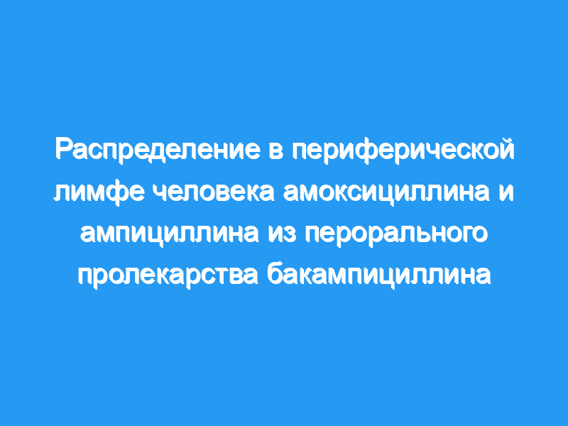 Соединения показали сходные диапазоны концентраций в сыворотке и лимфе, средняя индивидуальная пиковая концентрация, площадь под кривыми концентрации и период полувыведения в сыворотке составили 9,6 мг/л, 24,8 мг/ч/л и 0,80 ч соответственно для амоксициллина и 11,0 мг/л, 21,4 мг/ч/л и 0,93 ч для ампициллина из bacampicilli.