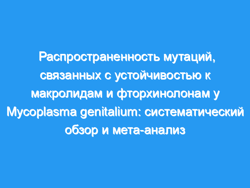 В целом 59 исследований из 21 страны соответствовали критериям включения в наше исследование: 57 исследований устойчивости к макролидам (8966 образцов), 25 исследований устойчивости к фторхинолонам (4003 образца) и 22 исследования двойной устойчивости к макролидам и фторхинолонам (3280 образцов). Суммарная распространенность мутаций, связанных с устойчивостью к макролидам, среди образцов M genitalium составила 35,5% (95% ДИ 28·8-42·5 ), распространенность увеличилась с 10·0% (95% ДИ 2·6-20·1 %) до 2010 года, до 51·4% (40·3-62·4%) в 2016-17 годах (p<,0·0001). Распространенность мутаций, связанных с устойчивостью к макролидам, была значительно выше в образцах из регионов Западной части Тихого океана и Северной и Южной Америки ВОЗ, чем в образцах из европейского региона ВОЗ. Общая распространенность мутаций, связанных с резистентностью к фторхинолонам, в образцах M genitalium составила 7·7% (95% ДИ 4·5-11·4 %). Распространенность существенно не менялась с течением времени, но была значительно выше в регионе Западной части Тихого океана, чем в европейском регионе. В целом, распространенность как мутаций, связанных с устойчивостью к макролидам, так и мутаций, связанных с устойчивостью к фторхинолонам, среди образцов M genitalium составила 2·8% (1·3-4·7%). Распространенность двойной резистентности существенно не менялась с течением времени и существенно не различалась в зависимости от географического региона. Интерпретация: Глобальный эпиднадзор и меры по оптимизации эффективности лечения, включая стратегии, ориентированные на устойчивость, новые противомикробные препараты и комбинированные подходы к противомикробным препаратам, срочно необходимы для обеспечения излечения высокой доли инфекций, вызванных M. genitalium, и предотвращения дальнейшего распространения устойчивых штаммов. Финансирование: Австралийский Национальный совет по здравоохранению и медицинским исследованиям.