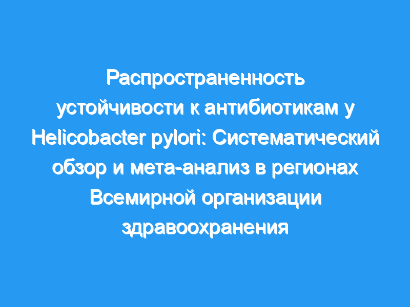 Предпосылки и цели: В 2017 году Всемирная организация здравоохранения (ВОЗ) объявила кларитромицинорезистентную бактерию Helicobacter pylori одним из приоритетных направлений исследований и разработок антибиотиков. Однако нет четких данных о глобальном распространении резистентности или ее клинических эффектах. Мы провели систематический обзор и метаанализ, чтобы оценить распределение резистентности H. pylori к широко используемым антибиотикам и измерить связь между устойчивостью к антибиотикам и неэффективностью лечения.