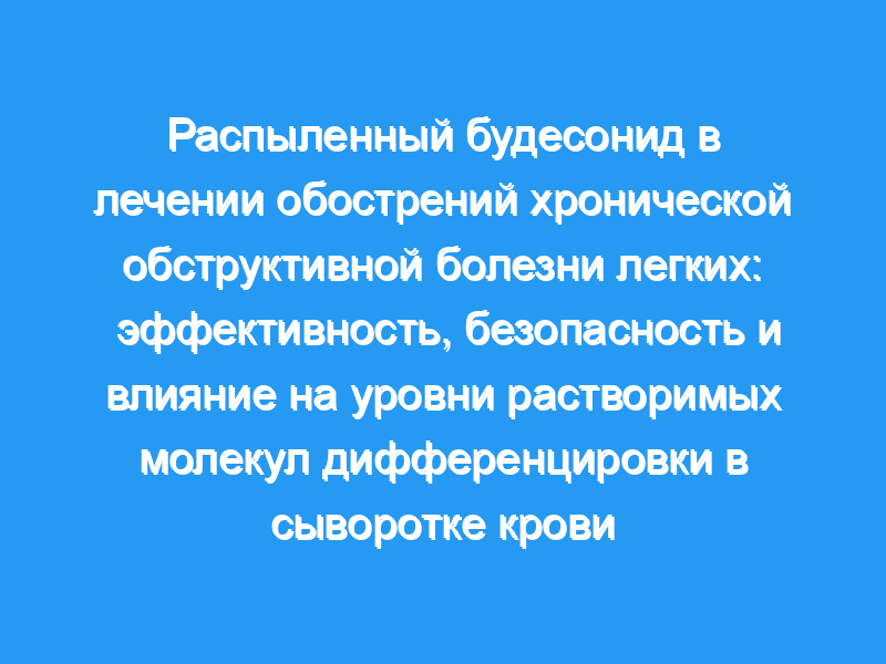 Изучить эффективность и безопасность распыленного будесонида и системных глюкокортикостероидов (ГКС) (СГКС) при лечении обострения хронической обструктивной болезни легких (ХОБЛ) и их влияние на концентрацию растворимых антигенов дифференцировки лейкоцитов в сыворотке крови.