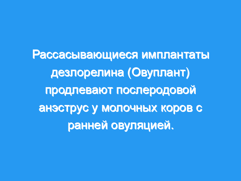 В заключение, введение биоабсорбируемого имплантата дезлорелина в течение 48 послеродовых дней увеличило интервал до первой овуляции по крайней мере до 24 дпп у 46 из 47 коров.