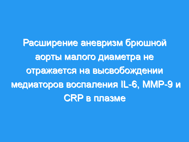 Не было обнаружено корреляции между уровнями циркулирующего IL-6, MMP-9, CRP и расширением AAAS малого диаметра, что указывает на отсутствие клинического использования этих маркеров при наблюдении за AAA.