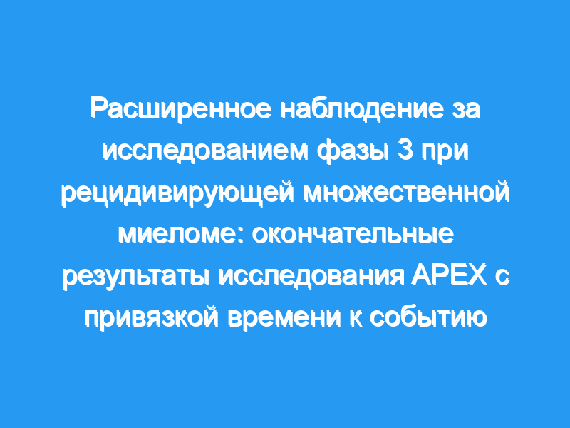 Первоначальный анализ исследования «Оценка ингибирования протеасом для продления ремиссии» (APEX) у пациентов с рецидивирующей множественной миеломой показал значительно более длительное время до прогрессирования, более высокую частоту ответа и улучшенную выживаемость при однократном применении бортезомиба по сравнению с высокими дозами дексаметазона.