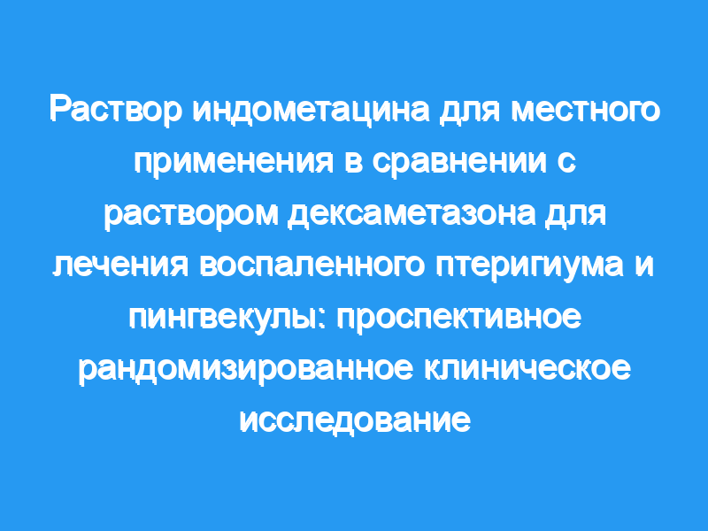 Сравнить действие 0,1% раствора индометацина для местного применения с действием 0,1% раствора фосфата дексаметазона для местного применения на признаки и симптомы воспаления птеригиума и пингвекулы.