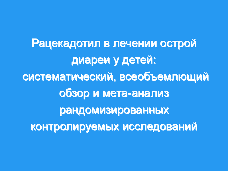 Рацекадотрил является рекомендованным руководством вариантом лечения острой диареи у детей, но существующие рекомендации и предыдущие обзоры в этой области основаны на небольшой части опубликованных фактических данных. Поэтому мы провели систематический поиск рандомизированных контролируемых исследований, оценивающих рацекадотрил в качестве дополнения или в сравнении с другими методами лечения.