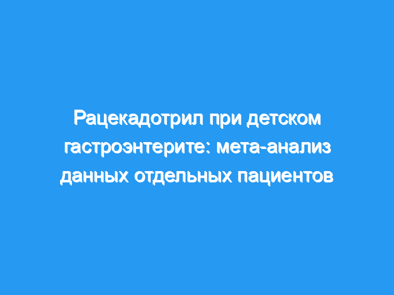 Девять рандомизированных клинических исследований (n=1384) были идентифицированы с использованием необработанных данных. Было обнаружено, что исходный уровень обезвоживания и ротавирус являются двумя важными предикторами, влияющими на исходы. Доля выздоровевших пациентов была выше в группах рацекадотрила по сравнению с плацебо, Отношение рисков ОР=2,04, 95% ДИ (1,85, 2,32), p<,0,001. Для стационарных исследований соотношение среднего выхода кала рацекадотрил/плацебо составило 0,59 (0,51, 0,74), p<,0,001. Для амбулаторных исследований соотношение среднего количества диарейных испражнений рацекадотрил/плацебо составило 0,63 (0,51, 0,74), p<, 0,001.