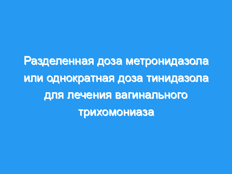Мы рекомендуем назначать однократную разделенную дозу 1,6 г метронидазола в качестве альтернативного препарата для лечения вагинальной трихомонии.