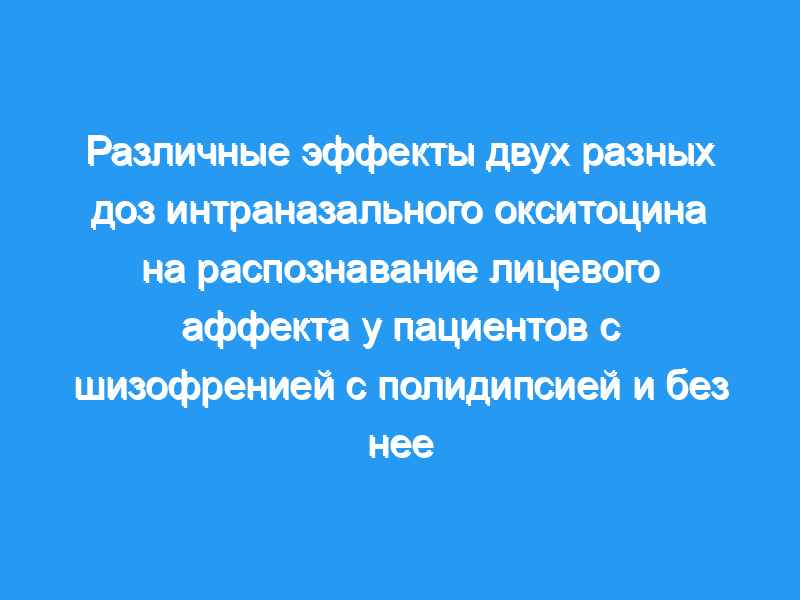 Обоснование: Гипонатриемия и резистентность к дексаметазону у пациентов с полидипсической шизофренией объясняются изменениями активности антидиуретических средств, модулируемых гиппокампом, и гормона стресса соответственно. Однако связь нейроэндокринных результатов с психическим заболеванием неизвестна. Нарушение способности распознавать эмоции на лице было связано с основными признаками шизофрении и снижением уровня близкородственного гормона окситоцина в подгруппе полидипсиков. Интраназальный окситоцин усиливает распознавание лицевого аффекта у здоровых людей.