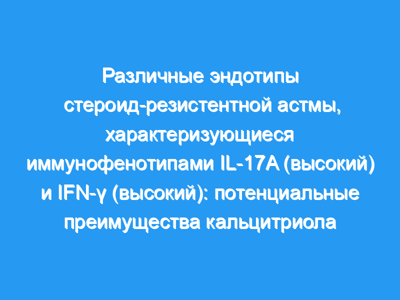 У пациентов с астмой SR существуют иммунофенотипы IL-17A (высокий) и IFN-γ(высокий). Эти данные идентифицируют иммунологические пути, которые, вероятно, лежат в основе благотворного клинического эффекта кальцитриола у пациентов с астмой SR, направляя профиль цитокинов SR в сторону более выраженного иммунного фенотипа SS, предлагая стратегии выявления иммунофенотипов, отвечающих на витамин D.