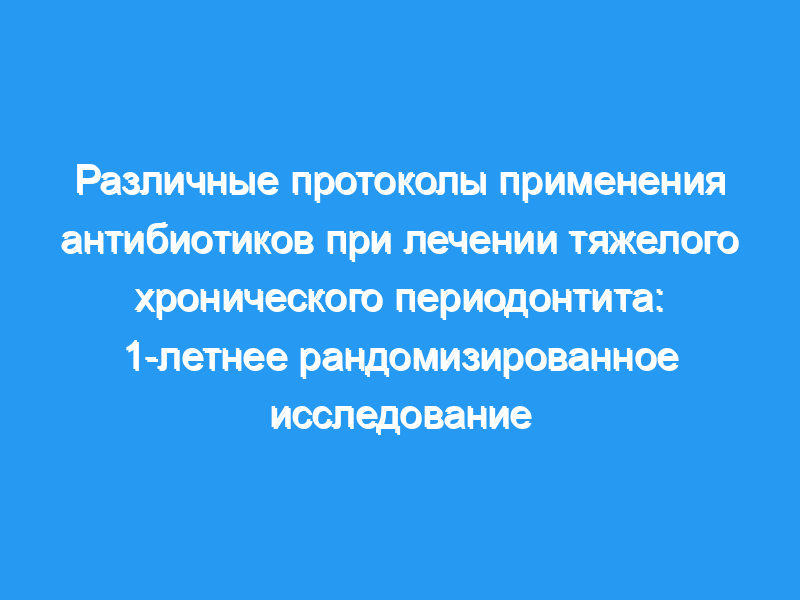 Было зарегистрировано сто девять испытуемых. Через 1 год 61,9% и 63,6% пациентов, получавших AMX + 250 или 400 мг MTZ в течение 14 дней, соответственно, достигли клинической конечной точки лечения (≤4 участка с глубиной зондирования ≥5 мм), против 31,8% тех, кто принимал 250 или 400 мг MTZ в течение 7 дней. (p <, 0,05) и 13,6% тех, кто получает только SRP (p <, 0,05). Четырнадцать дней MTZ + AMX были единственным значимым предиктором достижения пациентами клинической конечной точки через 1 год (OR, 5,26, 95% ДИ, 2,3-12,1, p = 0,0000). Частота нежелательных явлений не различалась между группами лечения (p >, 0,05).