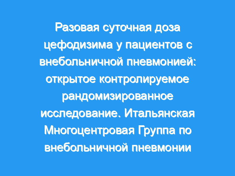 Мы заключаем, что цефодизим 1 г Внутримышечное введение один раз в день является эффективным режимом дозирования при лечении пациентов с внебольничной пневмонией.