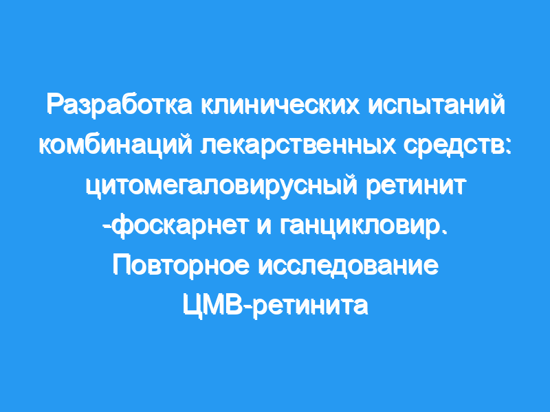 Повторное лечение цитомегаловирусного ретинита было многоцентровым клиническим испытанием, разработанным для оценки трех методов лечения рецидивирующего ЦМВ-ретинита: (1) фоскарнет, (2) ганцикловир в высоких дозах и (3) комбинация фоскарнет и ганцикловир.