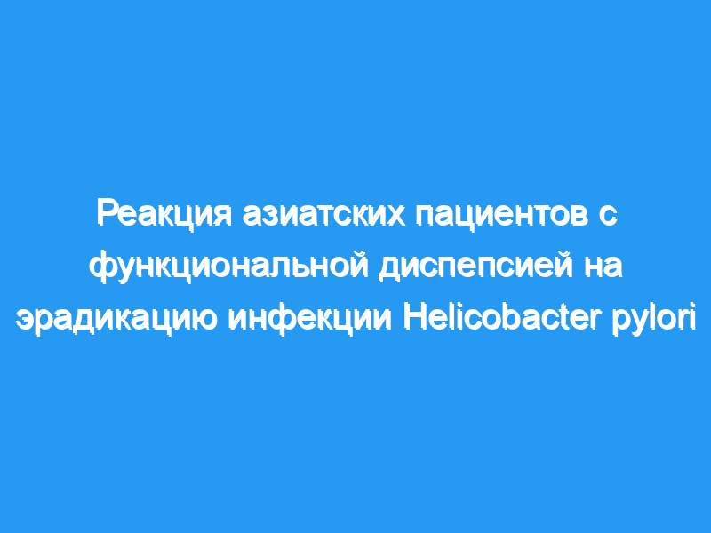 Цели/предпосылки: Роль инфекции Helicobacter pylori в функциональной диспепсии (FD) остается спорной. Несколько рандомизированных контролируемых исследований с участием населения на Западе не выявили статистически значимого преимущества по сравнению с плацебо. Однако ни в одном из этих исследований не было задействовано азиатское население с высоким уровнем инфицирования.