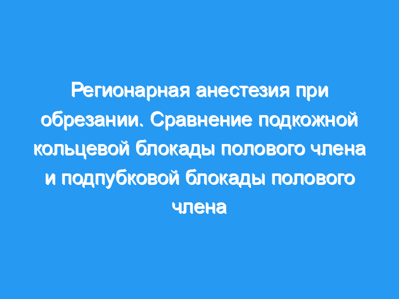 В этом проспективном исследовании сравнивались методы подкожной кольцевой блокады полового члена и подкожной кольцевой блокады полового члена для обезболивания после обрезания.