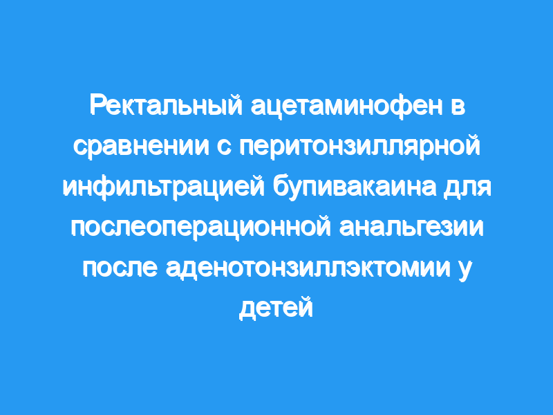 Острые послеоперационные обезболивающие эффекты перитонзиллярной инфильтрации бупивакаином по сравнению с Было проведено сравнение ректальных свечей с ацетаминофеном при плановой аденотонзиллэктомии.