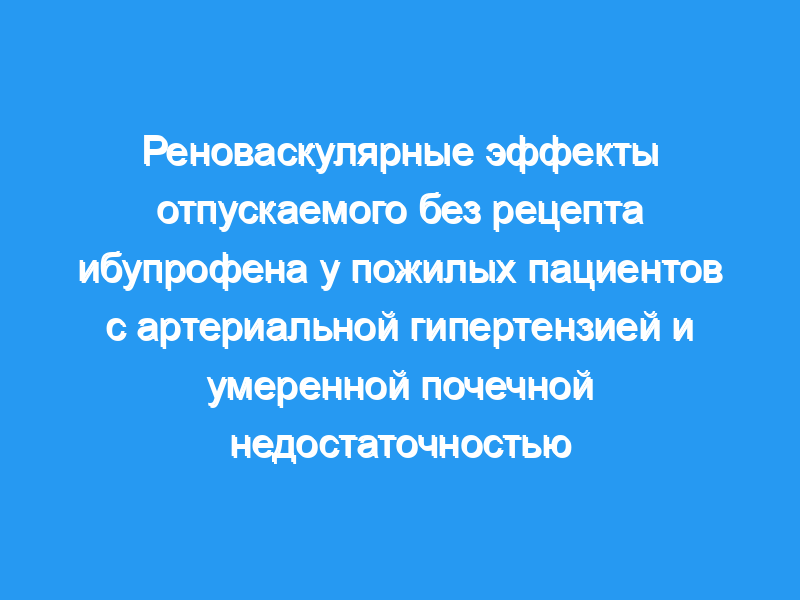 Чтобы определить реноваскулярные эффекты ибупрофена, отпускаемого без рецепта, в максимальной маркированной безрецептурной (безрецептурной) дозе в течение 7 дней, и сравнить эти эффекты с эффектами двух других доступных безрецептурных анальгетиков, аспирина и ацетаминофена, мы обследовали 25 пожилых пациентов с легкой гипертензией, получаемой тиазидами, и легкой почечной недостаточностью. недостаточность.