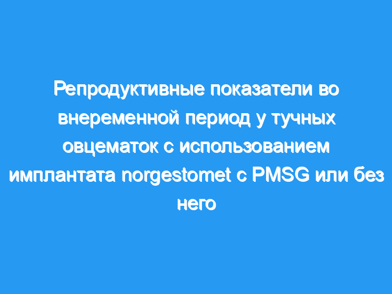 Был сделан вывод, что использование имплантата norgestomet, особенно в сочетании с PMSG, может увеличить и улучшить коэффициент оплодотворения овец в программе вне сезона размножения.