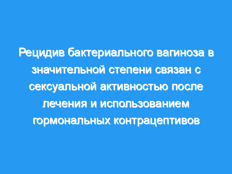 Рецидив бактериального вагиноза (БВ) после лечения является распространенным явлением. Наша цель состояла в том, чтобы определить, было ли поведение связано с рецидивом БВ у женщин в рандомизированном контролируемом исследовании (РКИ).