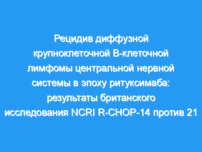 Рецидив диффузной крупноклеточной В-клеточной лимфомы (DLBCL) со стороны центральной нервной системы (ЦНС) связан с мрачным прогнозом. Здесь мы сообщаем об анализе рецидивов ЦНС у пациентов, получавших лечение в рамках британского NCRI III фазы R-CHOP (ритуксимаб, циклофосфамид, доксорубицин, винкристин и преднизолон) в 14 и 21 рандомизированном исследовании. Пациенты и методы: В исследовании R-CHOP 14 против 21 сравнивалось применение R-CHOP два раза в неделю против трех у ранее не лечившихся пациентов в возрасте ≥18 лет с объемной ДЛБКЛ I-IV стадии (n = 1080). Подробная информация о профилактике ЦНС была ретроспективно собрана с участвующих сайтов. Были оценены частота и факторы риска рецидива ЦНС, включая применение CNS-IPI.