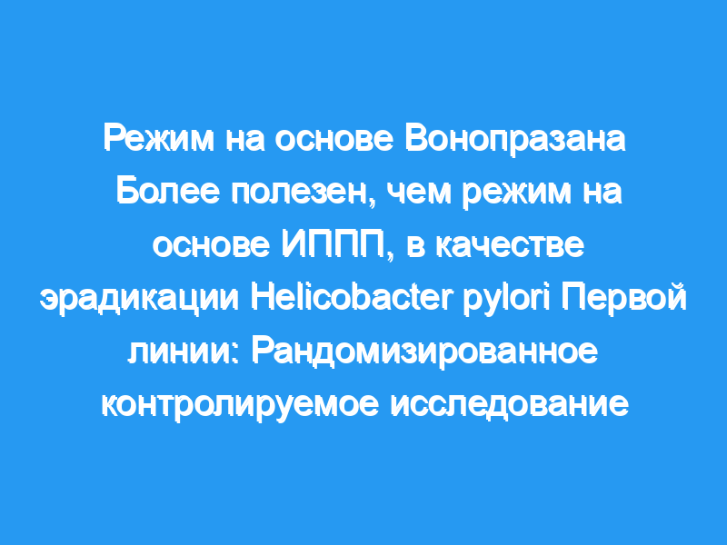 Режим, основанный на VPZ, более полезен, чем режим, основанный на PPI, в качестве первой линии эрадикационной терапии H. pylori.