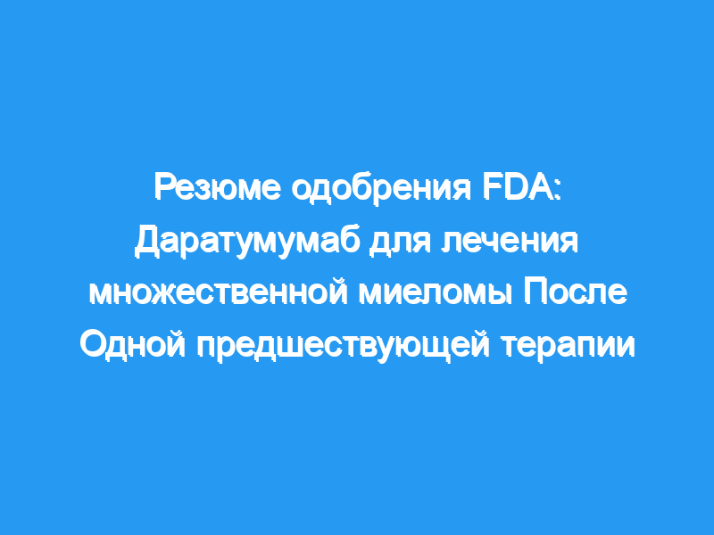 Последствия для практики: Даратумумаб, первое моноклональное антитело, нацеленное против CD38, получило ускоренное одобрение Управления по контролю за продуктами и лекарствами США в 2015 году на основе данных исследований с одним агентом и одной рукой, которые предоставили информацию о частоте ответа.