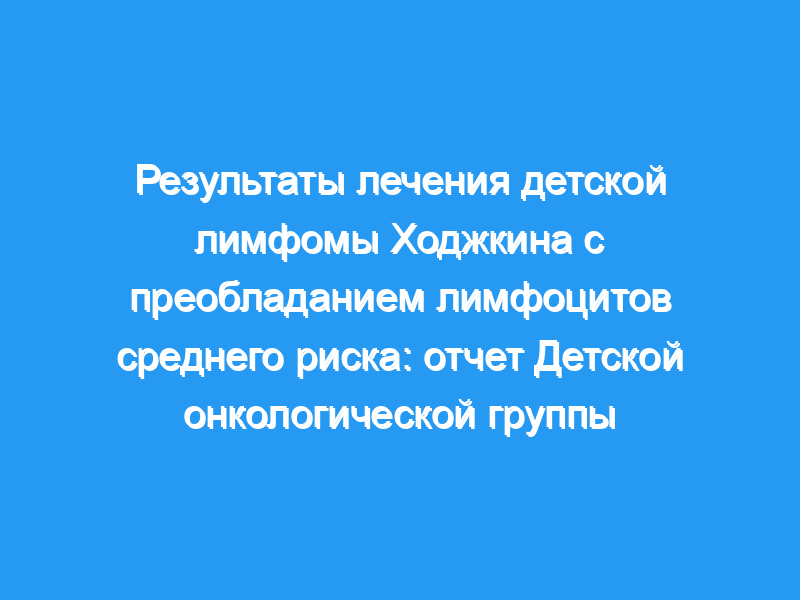 Оптимальное ведение пациентов с лимфомой Ходжкина с преобладанием лимфоцитов среднего риска (ЛПХЛ) неясно из-за их небольшого числа в большинстве клинических испытаний. Детская онкологическая группа AHOD0031, рандомизированное исследование III фазы с участием педиатрических пациентов с лимфомой Ходжкина среднего риска (HL), включала пациентов с LPHL. Мы сообщаем о результатах лечения этих пациентов и представляем направления будущих терапевтических стратегий. Процедура: Пациенты получали два цикла доксорубицина, блеомицина, винкристина, этопозида, преднизолона и циклофосфамида (ABVE-PC) с последующей оценкой реакции. Пациенты с медленным ранним ответом были рандомизированы на два дополнительных цикла ABVE-PC ± два цикла дексаметазона, этопозида, цисплатина и цитарабина, и все они получили включенную полевую лучевую терапию (ИФРТ). Оперативные службы раннего реагирования (RERS) получили два дополнительных цикла ABVE-PC. Пациенты с полным ответом (CR) были рандомизированы на ИФРТ или без дальнейшей терапии. RERs без CR получили IFRT.
