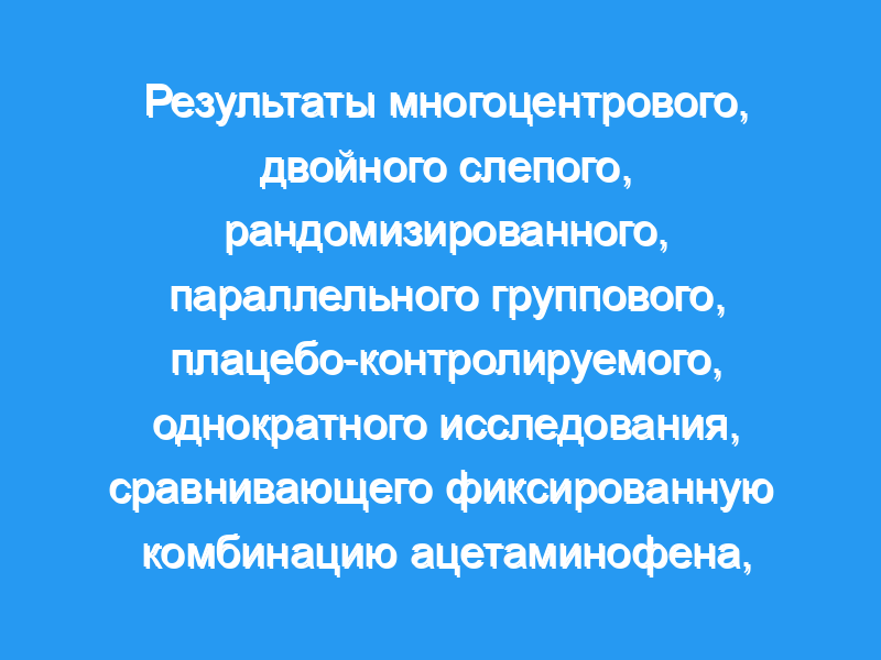 В многоцентровом, двойном слепом, рандомизированном, параллельном групповом, плацебо-контролируемом, однократном исследовании (n = 1555) фиксированную комбинацию ацетаминофена 500 мг, ацетилсалициловой кислоты 500 мг и кофеина 130 мг (AAC) сравнивали с ибупрофеном 400 мг (IB) и плацебо (PLA) для острого лечения мигрени. Субъекты и методы: Исследовательский пост-hoc анализ сравнивал AAC с IB и PLA в подгруппе пациентов с сильной болью на исходном уровне (n = 660).