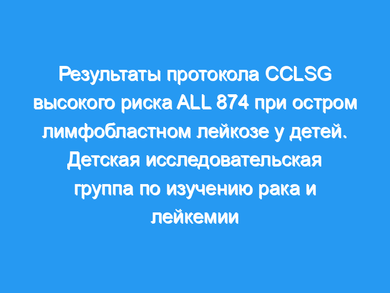 Сто восемьдесят восемь детей с острым лимфобластным лейкозом (ОЛЛ) проходили лечение в рамках исследования Группы высокого риска по изучению рака и лейкемии у детей ALL 874 с апреля 1987 по сентябрь 1991 года. Эти пациенты получали режим индукции из четырех препаратов, за которым следовал режим ранней консолидации, облучение черепа через 6 месяцев ремиссии и трехлетнюю непрерывную терапию с ротационным введением четырех препаратов.