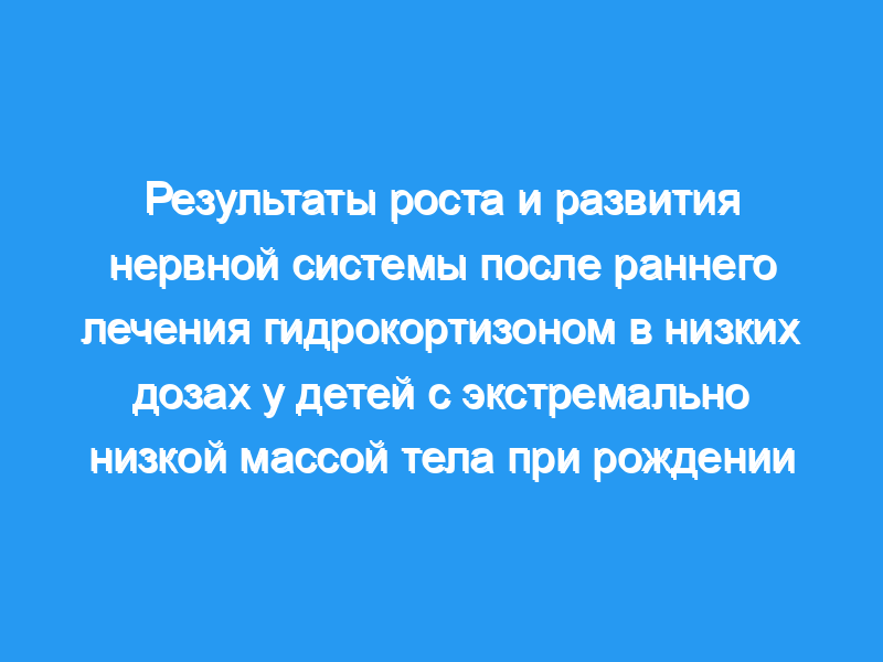 Раннее лечение гидрокортизоном в низких дозах не было связано с усилением церебрального паралича. У пролеченных младенцев были показатели улучшения результатов развития. Вместе с кратковременной пользой, о которой сообщалось ранее, эти данные подтверждают дополнительные исследования лечения гидрокортизоном надпочечниковой недостаточности у крайне недоношенных детей.