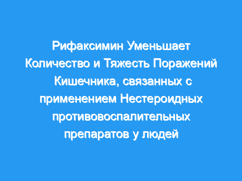 Мы обнаружили разрывы слизистой оболочки у 20% субъектов, получавших рифаксимин, и у 43% субъектов, получавших плацебо (P = .05 в анализе чувствительности post hoc). Ни у одного из пациентов в группе рифаксимина не развились большие повреждения, по сравнению с 9 пациентами в группе плацебо (P <, .001). Наши результаты показывают, что кишечные бактерии способствуют развитию энтеропатии, связанной с НПВП, у человека.