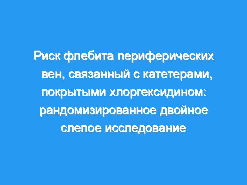 Оценить риск флебита, связанного с использованием полиуретановых катетеров с покрытием из хлоргексидина в периферических венах. Дизайн: Рандомизированное двойное слепое исследование, сравнивающее полиуретановые катетеры с покрытием из хлоргексидина и полиуретановые катетеры без покрытия.