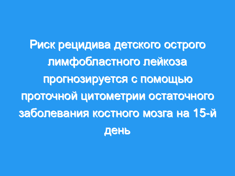 Измерение MRD FCM в костном мозге на 15-й день было самым мощным ранним предиктором рецидива, применимым практически ко всем пациентам, оно может дополнять стратификацию MRD на основе ПЦР, включая более поздние временные точки, что позволяет дополнительно адаптировать лечение.