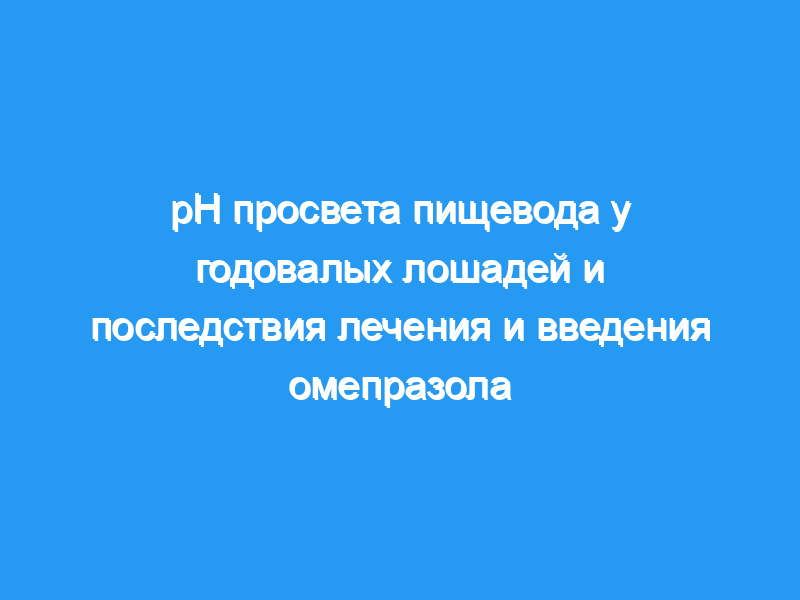 рН просвета пищевода варьировался от 4,90 до 9,70 (7,36 ± 0,27 и 7,18 ± 0,24 для проксимального и дистального электродов соответственно) и часто менялся (1,2 ± 0,9 изменения/мин и 0,8 ± 0,8 изменения/мин для проксимального и дистального электродов соответственно). рН просвета пищевода был связан со временем после приема концентрата, активностью и временем суток, но не с лечением омепразолом. Основные ограничения: Использовалось небольшое количество лошадей, а сроки измерений были ограничены.
